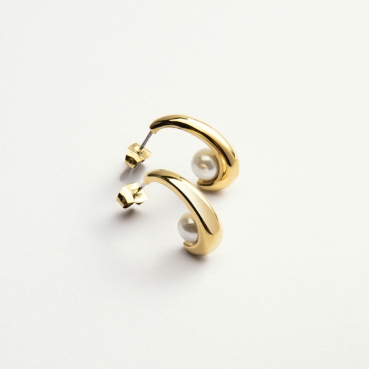 Главная изюминка этих серег – их уникальный дизайн. Изящная изогнутая форма полумесяца служит обрамлением для главной драгоценности – белой жемчужины. Она закреплена таким образом, что создает эффект невесомости, что придает серьгам легкость, воздушность и особую привлекательность.
